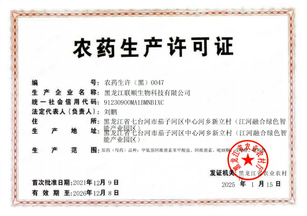 世界农化网中文网报道:2025年1月,黑龙江省农业农村厅批准了黑龙江联顺生物科技有限公司、黑龙江欣太生物科技有限公司的农药生产许可证扩增申请,这两家公司以及行业熟知的宁夏泰益欣均隶属于多维医药集团。
