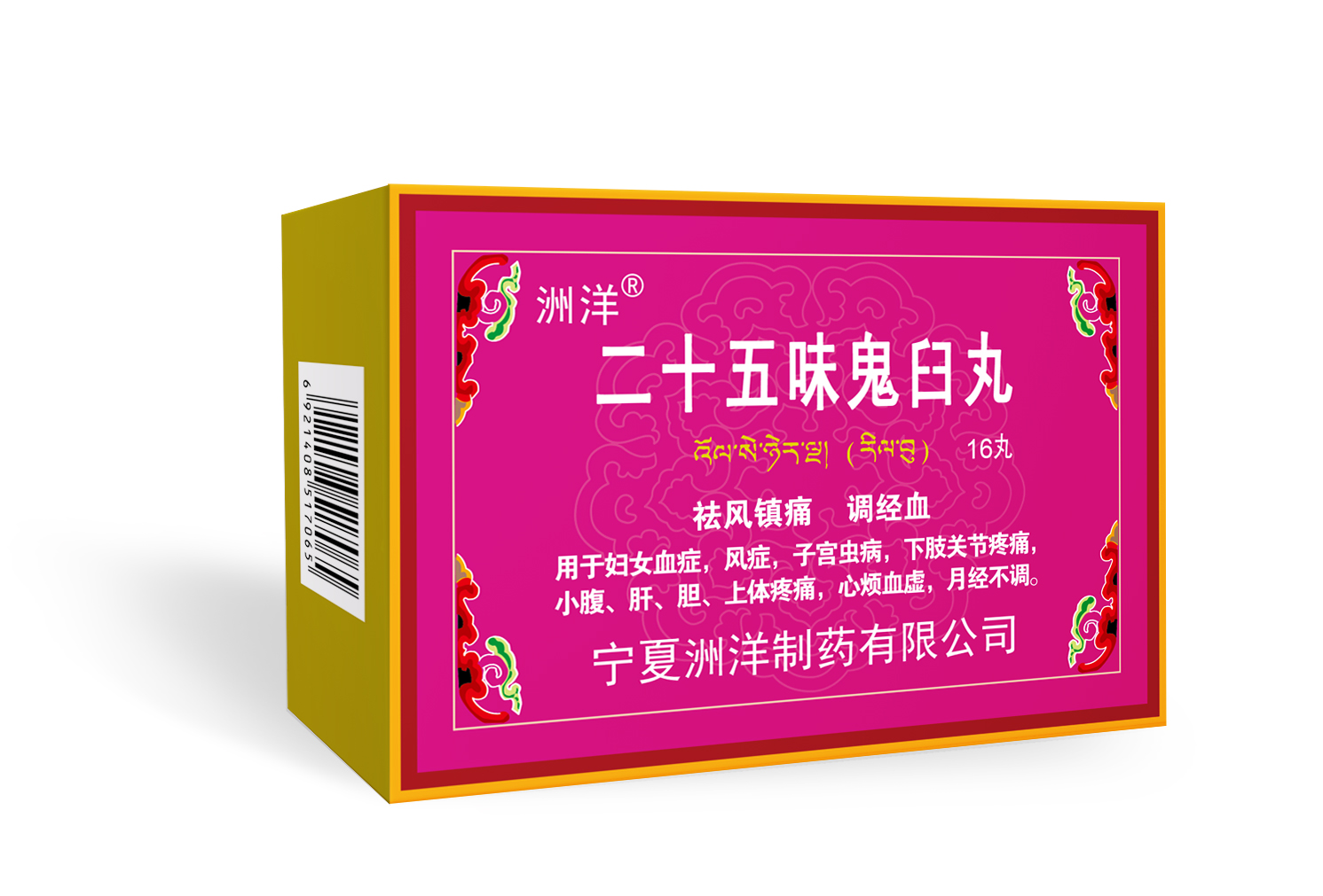 鬼臼(桃儿七)、藏茜草、石榴子、藏紫草、肉桂、矮紫堇、巴夏嘎、光明盐、硇砂、榜嘎、藏木香、诃子、人工熊胆、胡椒、喜马拉雅紫茉莉、余甘子、花蛇肉(去毒)、山柰、火硝、降香、沙棘膏、沉香、朱砂、肉豆蔻、枸杞、紫草茸、芜荽果。