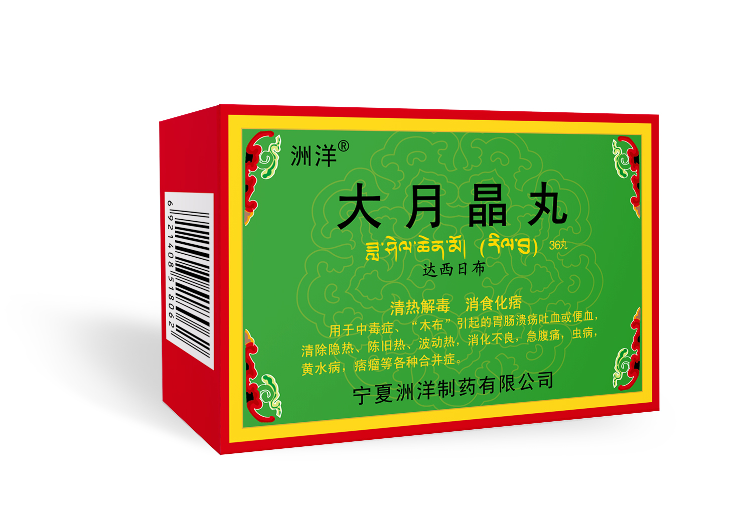 清热解毒,消食化痞。用于中毒症、“木布”引起的胃肠溃疡出血或便黑,清除隐热、陈旧热、波动热,消化不良,急腹痛,虫病,黄水病,痞瘤等各种合并症。
