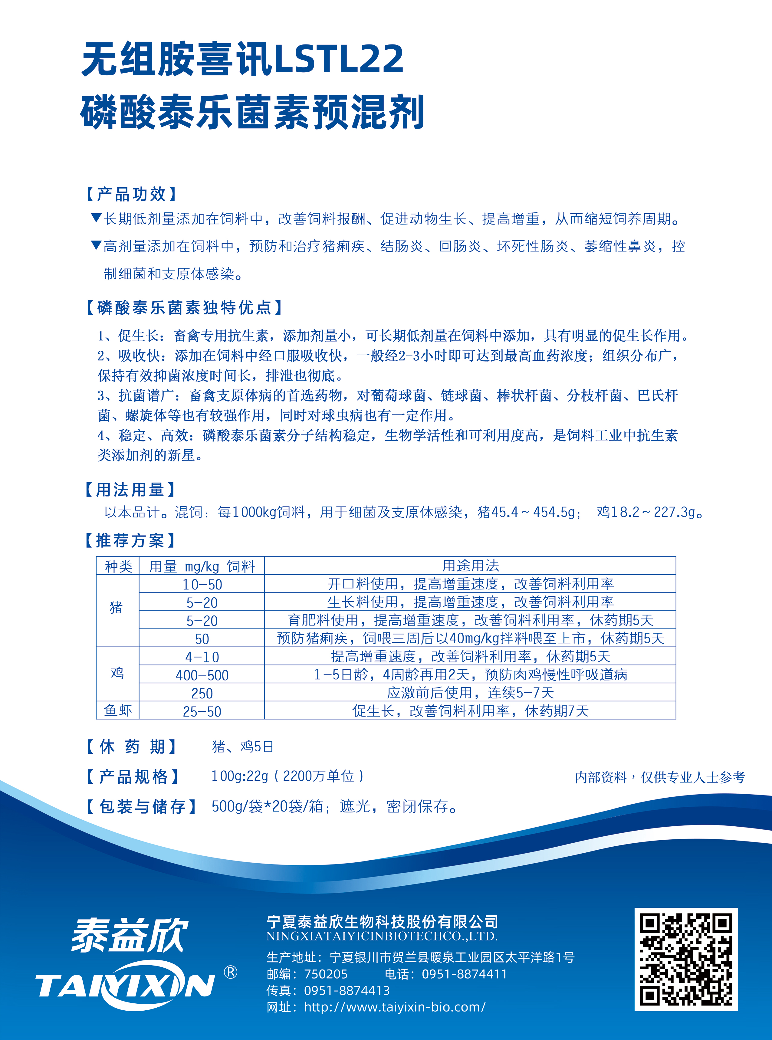 稳定、高效:磷酸泰乐菌素分子结构稳定,生物学活性和可利用度高,是饲料工业中抗生素类添加剂的新星。